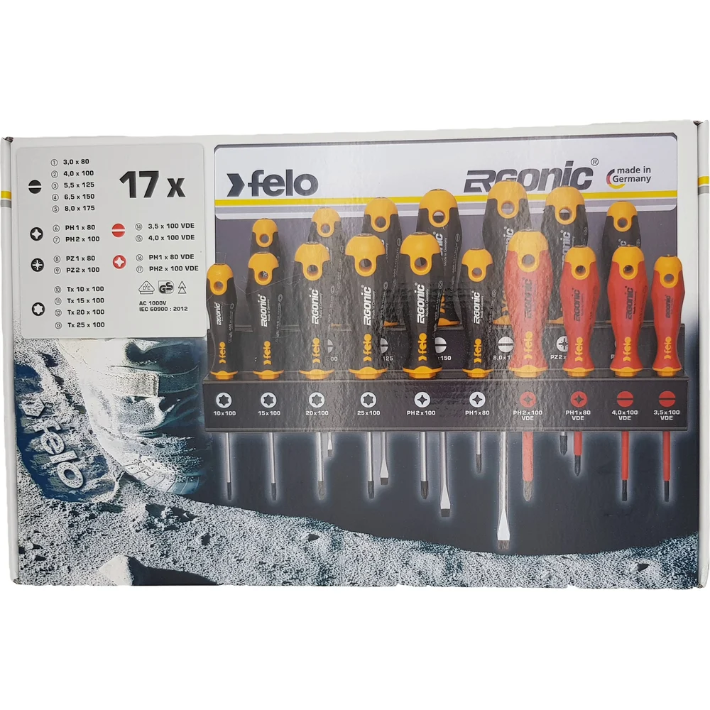 Набор отверток Felo Ergonic SL/PZ/PH/Tx и VDE на стальной стойке, 17 шт 40091743 — детальное фото